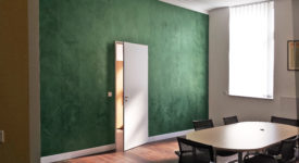 Die Wirkung ist überragend und zieht Blicke auf sich. Eine moderne Wanddeko in Höchstqualität. Die Wand haben wir in einem satten Grün gestrichen und auf der gegenüberliegenden diesen Farbton aufgegriffen und mit einer kreativen Wischtechnik aufgepeppt.