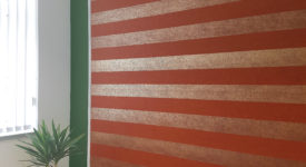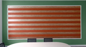 In unserem Besprechungszimmer haben wir großflächig eine hochwertige Dekortapete in einer Streifenoptik angebracht.
