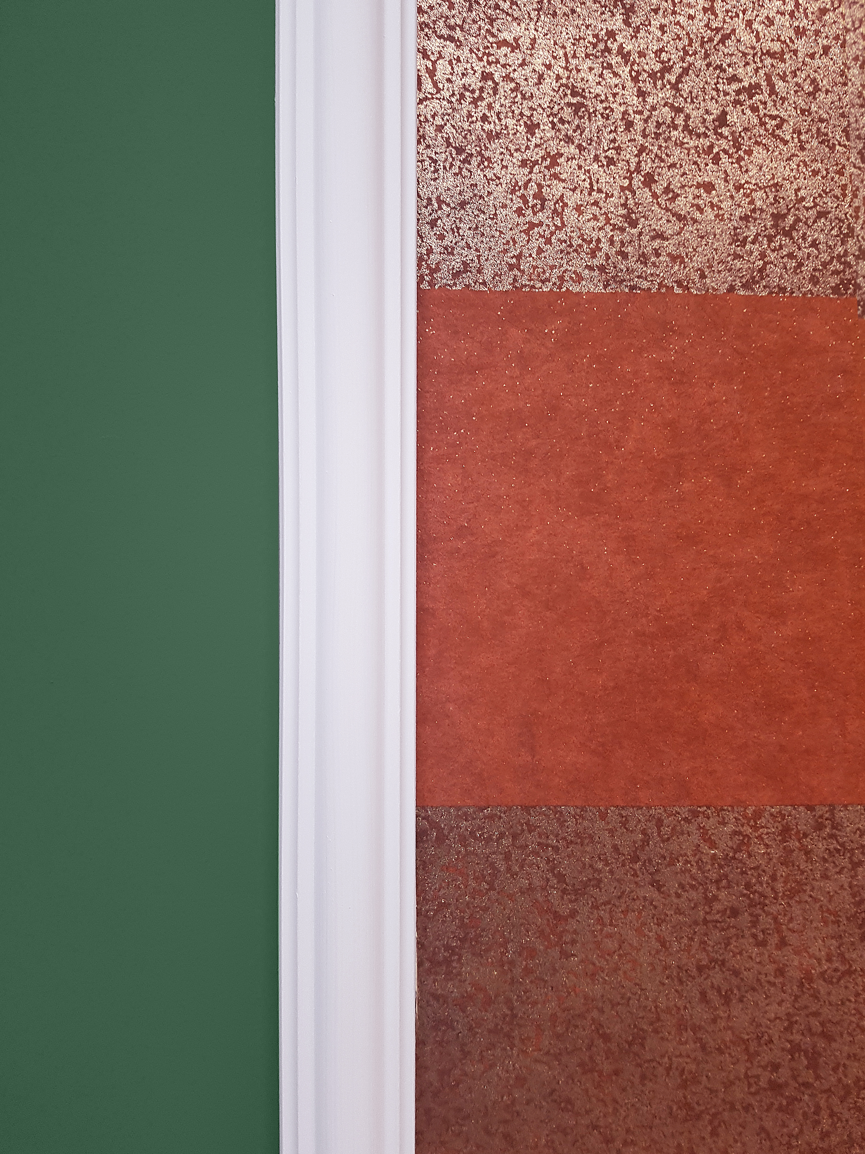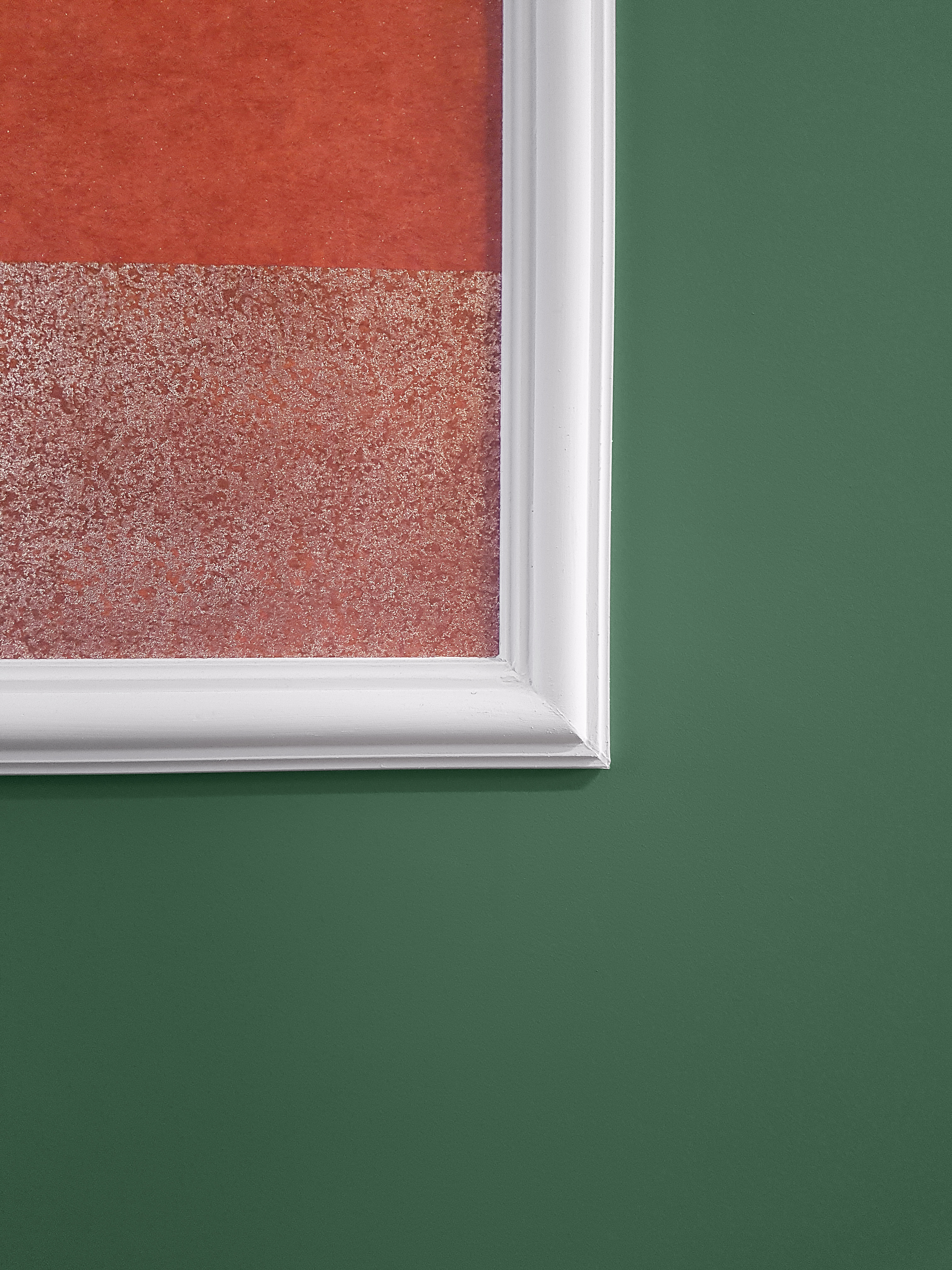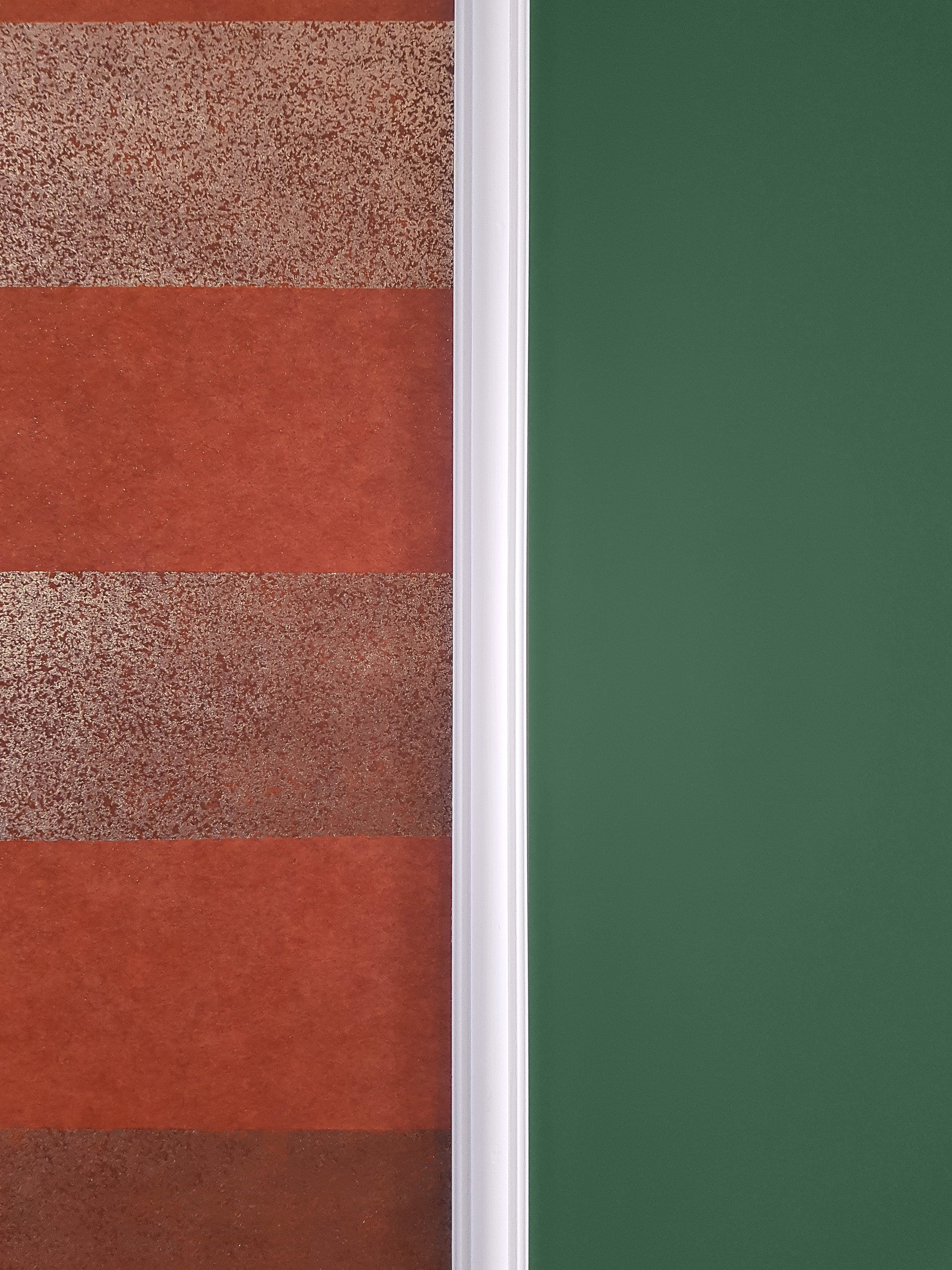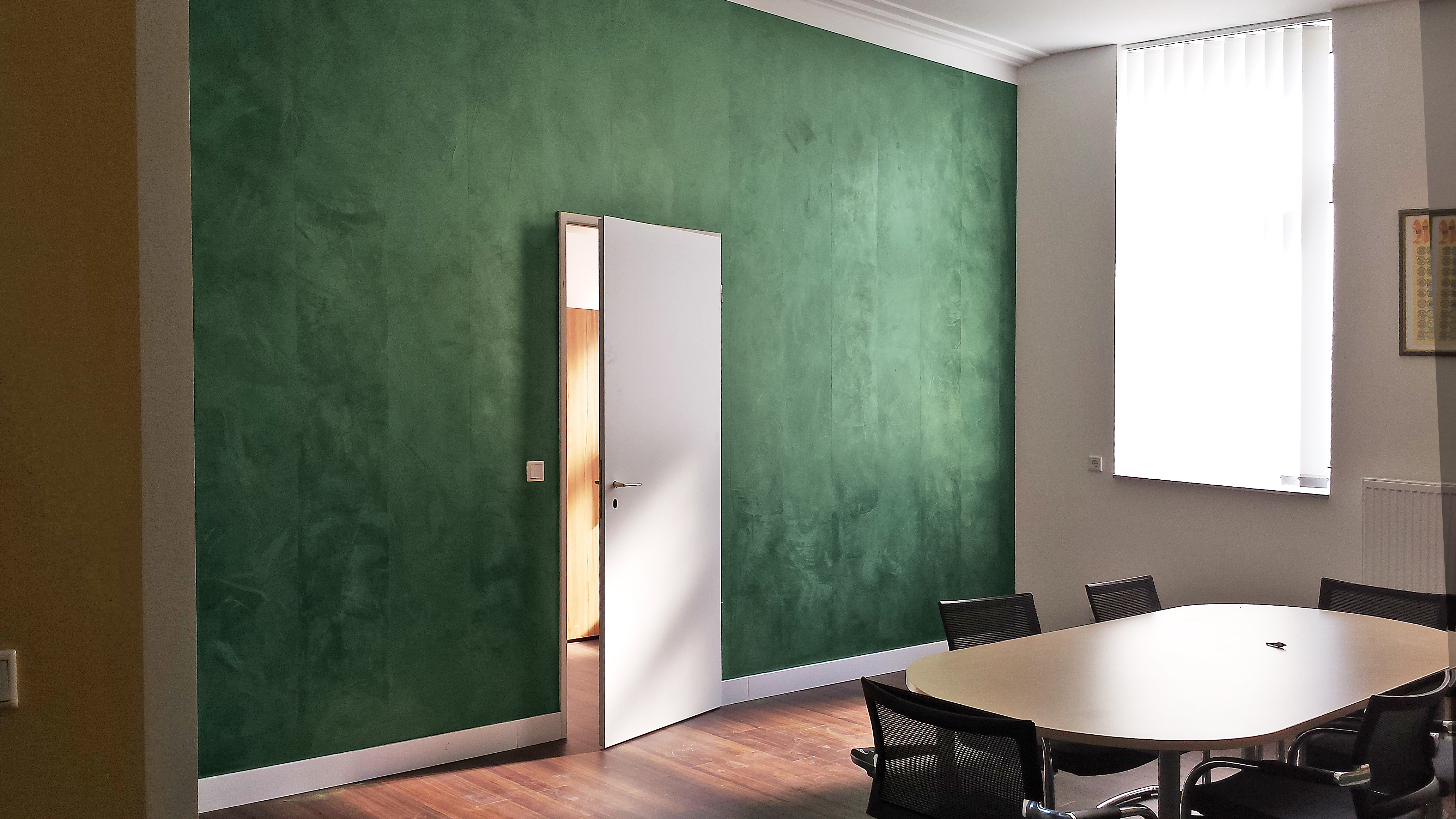 Die Wirkung ist überragend und zieht Blicke auf sich. Eine moderne Wanddeko in Höchstqualität. Die Wand haben wir in einem satten Grün gestrichen und auf der gegenüberliegenden diesen Farbton aufgegriffen und mit einer kreativen Wischtechnik aufgepeppt.