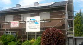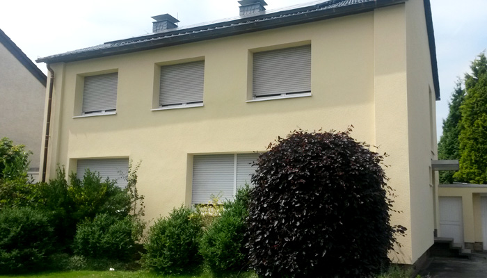 Komplett mineralisch hergestellte Dämmfassade (Mineralwolle) mit einer ebenfalls mineralischen Edelkratzputzfassade und anschließendem mineralischen Anstrich.